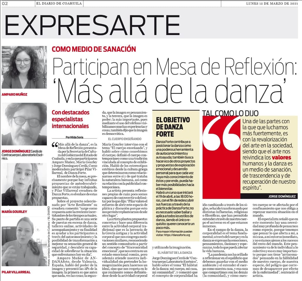”Participan en Mesa de Reflexión: 'Más allá de la danza'.”